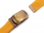 Metal buckle with tip end is suitable for producing strap (cloth) belts. On the one side of buckle are teeth that will lock the strap and hold it in place. The tip end needs to be attached with pliers.